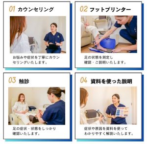 痛みや症状の解消、足の機能を向上させられるよう、しっかりとサポートいたします。