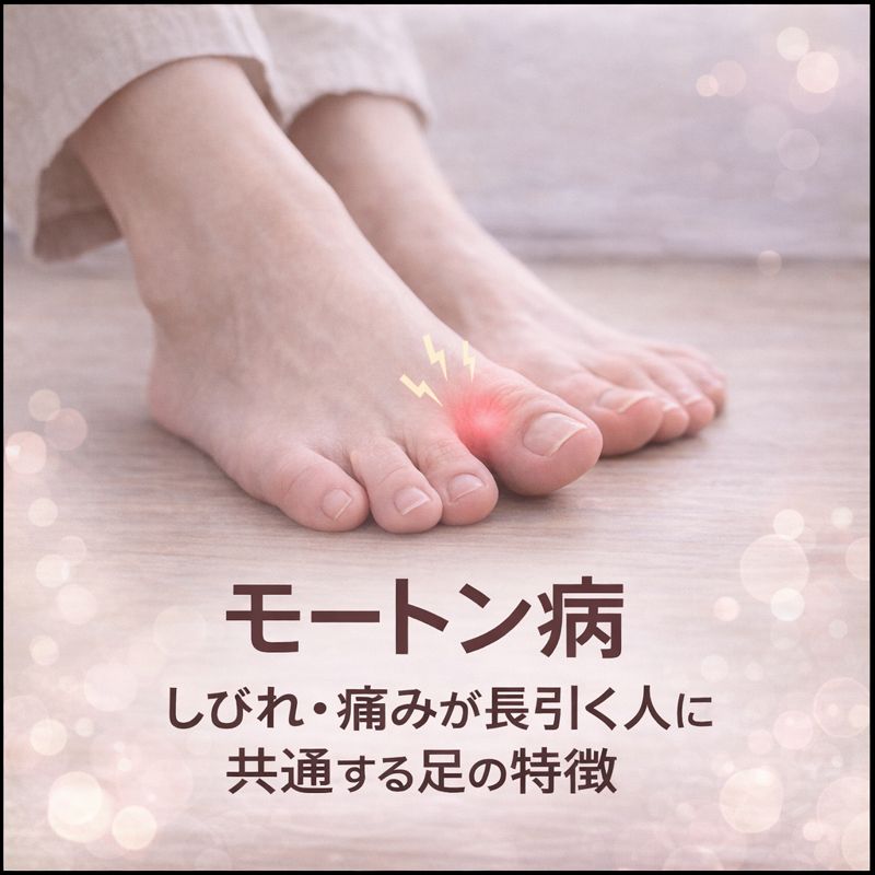 モートン病のしびれを和らげるセルフケア方法|整足院 熊本店が解説 公開日:2026年3月5日 モートン病 足の指がピリピリしびれる…それ、モートン病かもしれません 「歩くと足の指のつけ根がジンジンする」「靴を履くと中指や薬指がしびれる」 熊本市でも近年増えている足トラブルがモートン病です。 特に、 ・ヒールをよく履く方・立ち […] 続きを読む